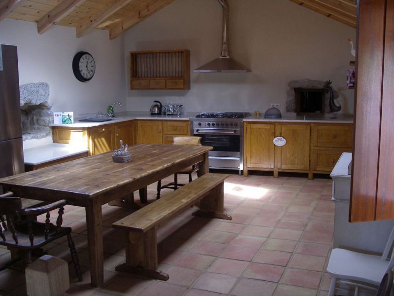 Dining Kitchen with large family table, two benches and two antique carved spanish chairs, with room for 10-12 comfortably. Stainless Steel double oven and hob, coffee machine, microwave, kettle, toaster and large free standing fridge freezer. This is a large room perfect for dinner, open plan into the lounge