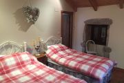 Bedroom 4, with direct access to the courtyard, is a Double with antique twin beds & wardrobe and an unusual dresser. The ensuite combines a bath with shower.